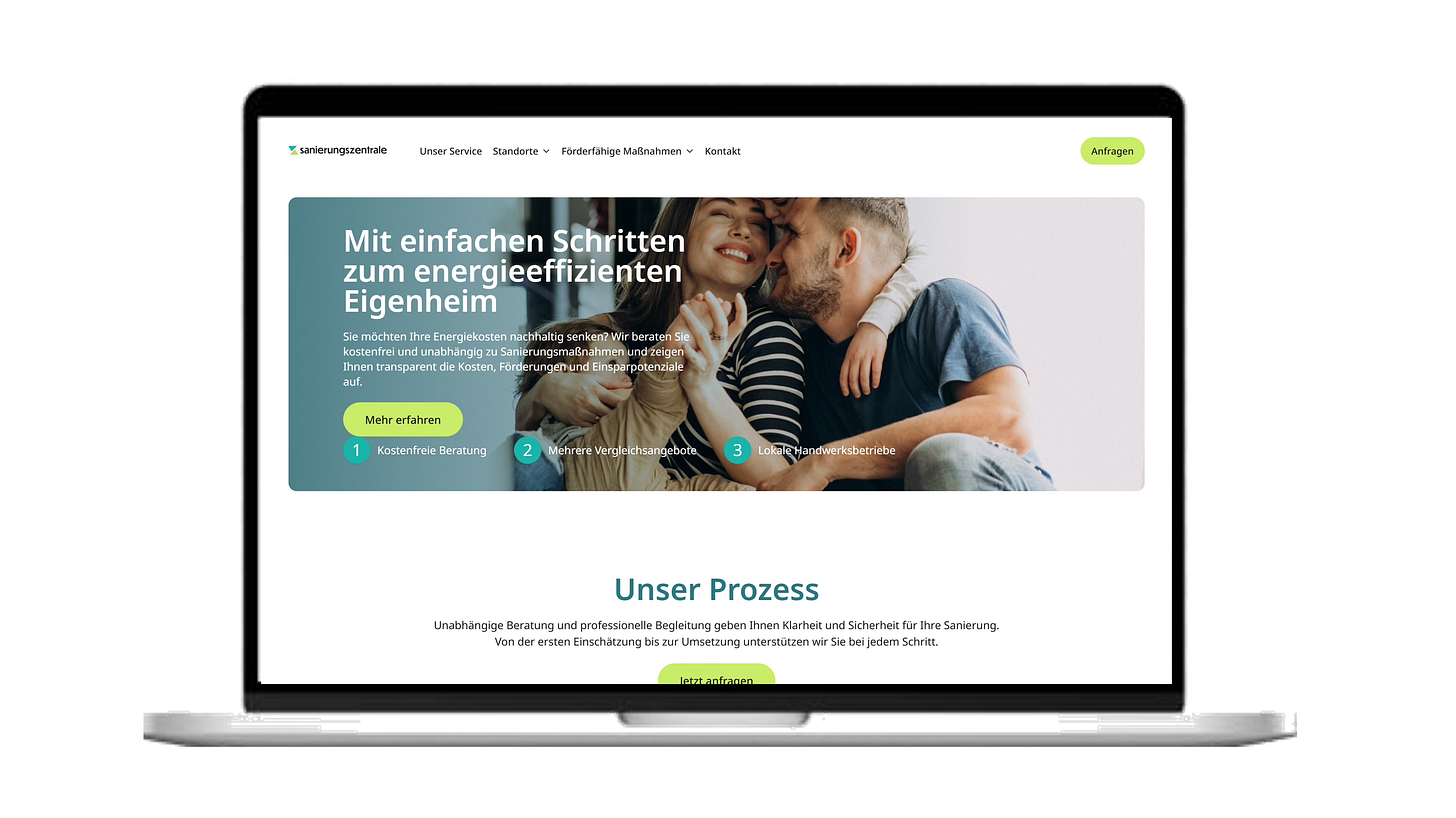 Our goal is to make sustainable building renovation significantly faster, more reliable and transparent for everyone involved. 1to3 energy is our platform that streamlines energy-oriented building renovations by connecting homeowners, certified energy efficiency experts, and the businesses of qualified tradespeople (which we call craft businesses here in Germany). We simplify the renovation journey end-to-end — from initial energy consulting and funding eligibility checks to planning and selecting execution partners.